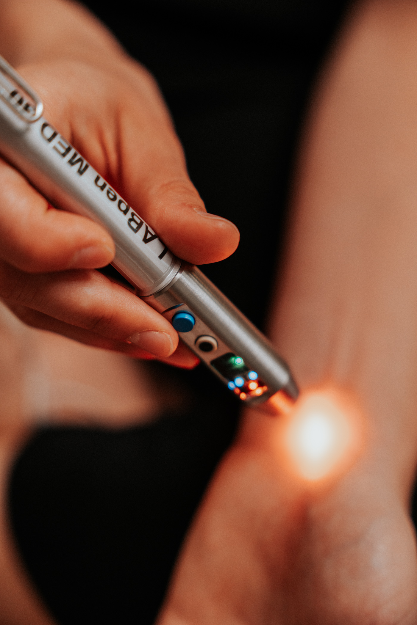 Die Lasertherapie ist ein modernes, nicht-invasives Verfahren, bei dem mit Lichtenergie gezielt bestimmte Körperstellen behandelt werden können, wodurch Schmerzen gelindert und die Heilung beschleunigt werden kann.